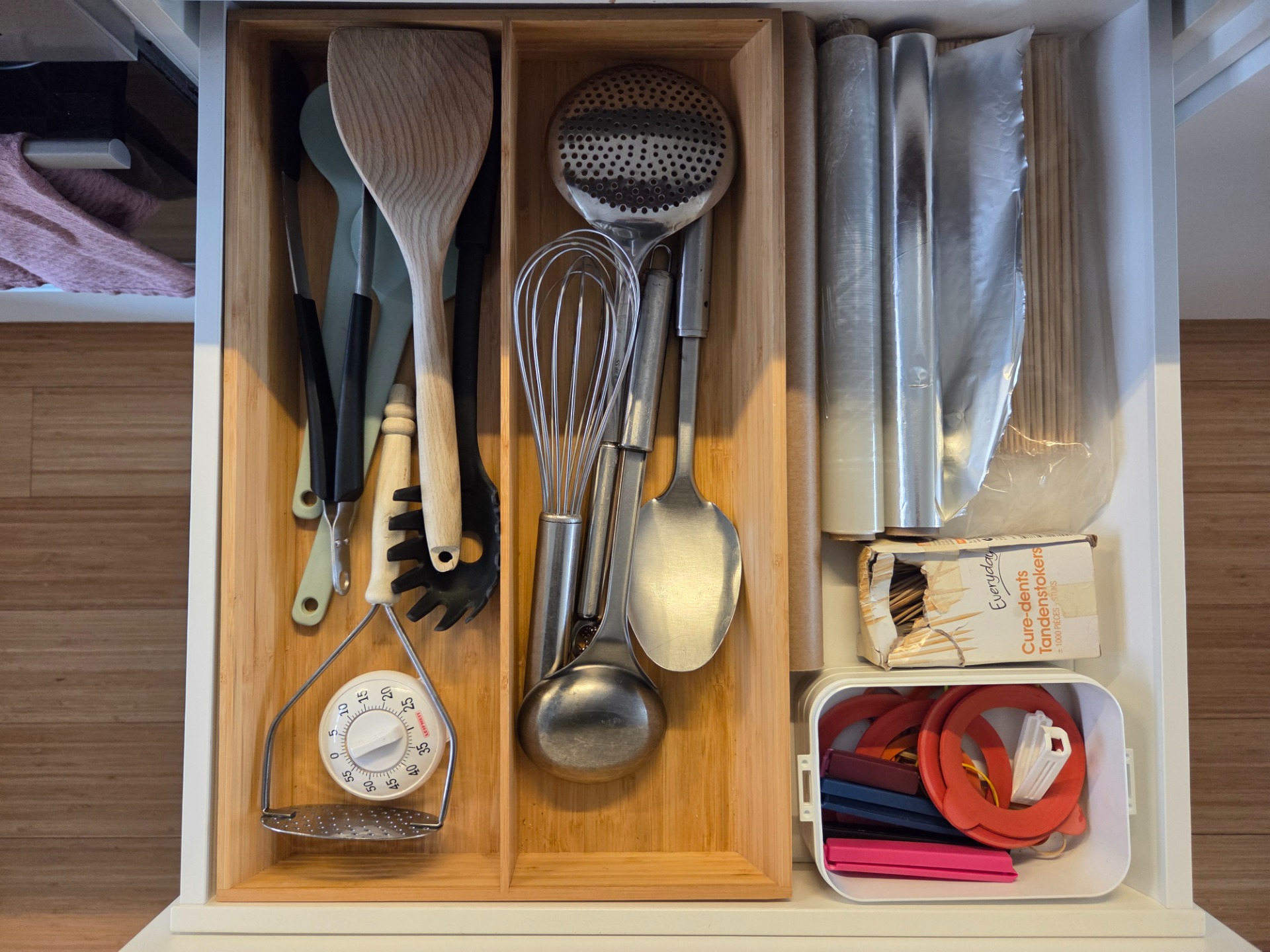 Een goede indeling is het fundament. Maar routines houden het in stand. Na elke maaltijd doorlopen we hetzelfde ritueel: aanrecht leegmaken, vaatwas vullen, stofzuigen. Elke avond brengen we het groentenafval naar buiten. Kleine acties, groot verschil.